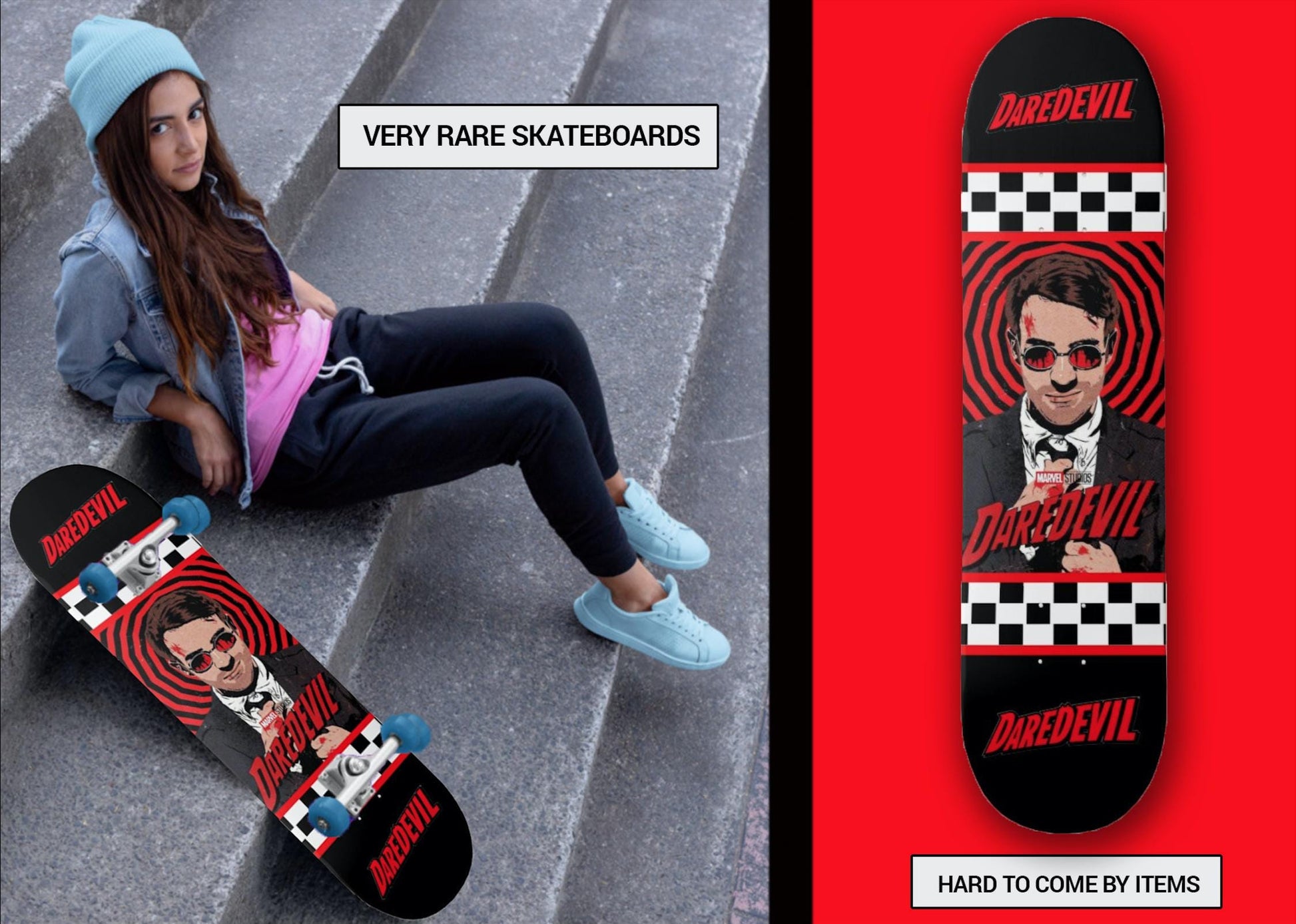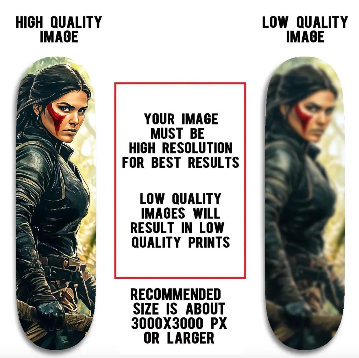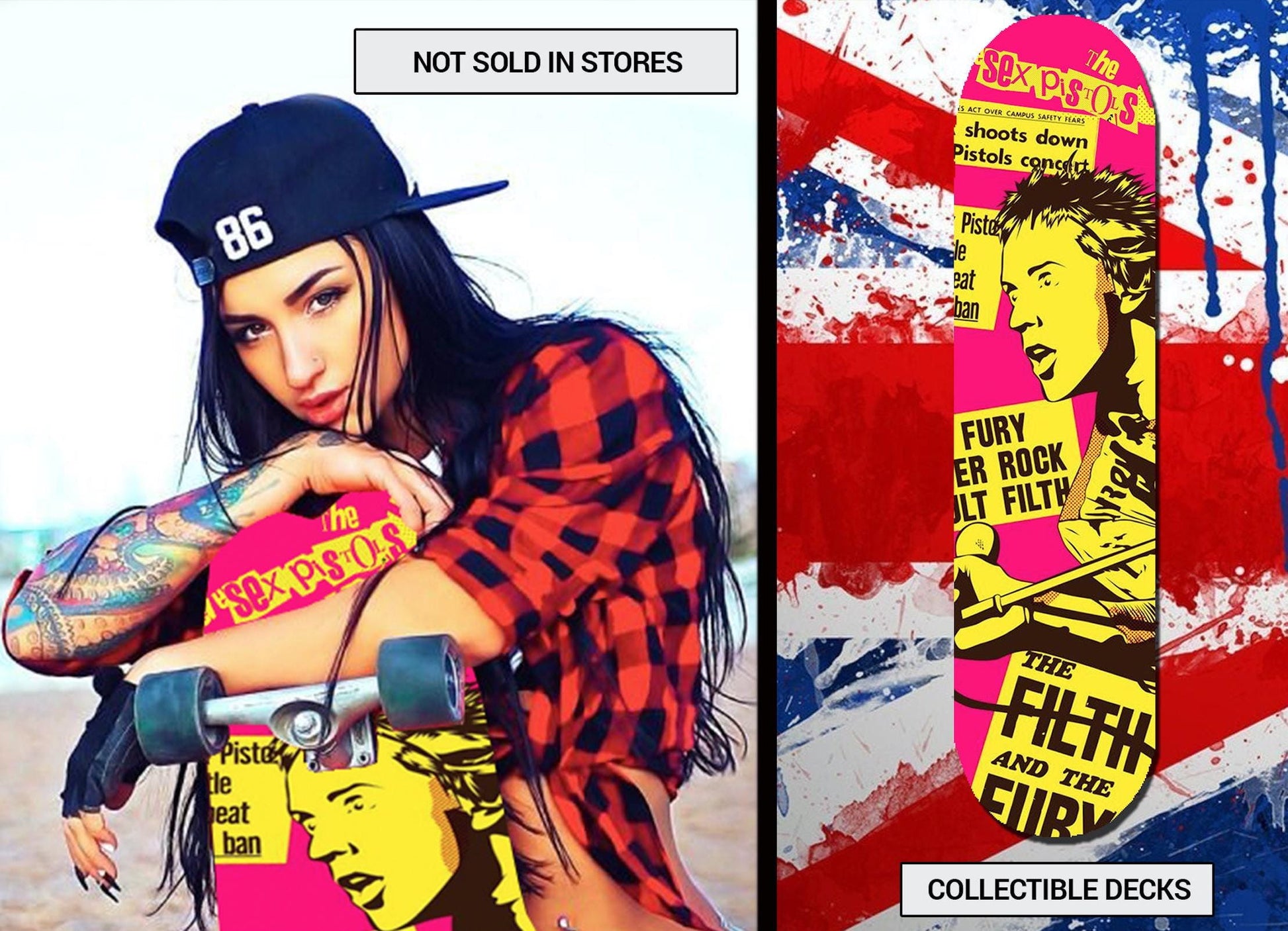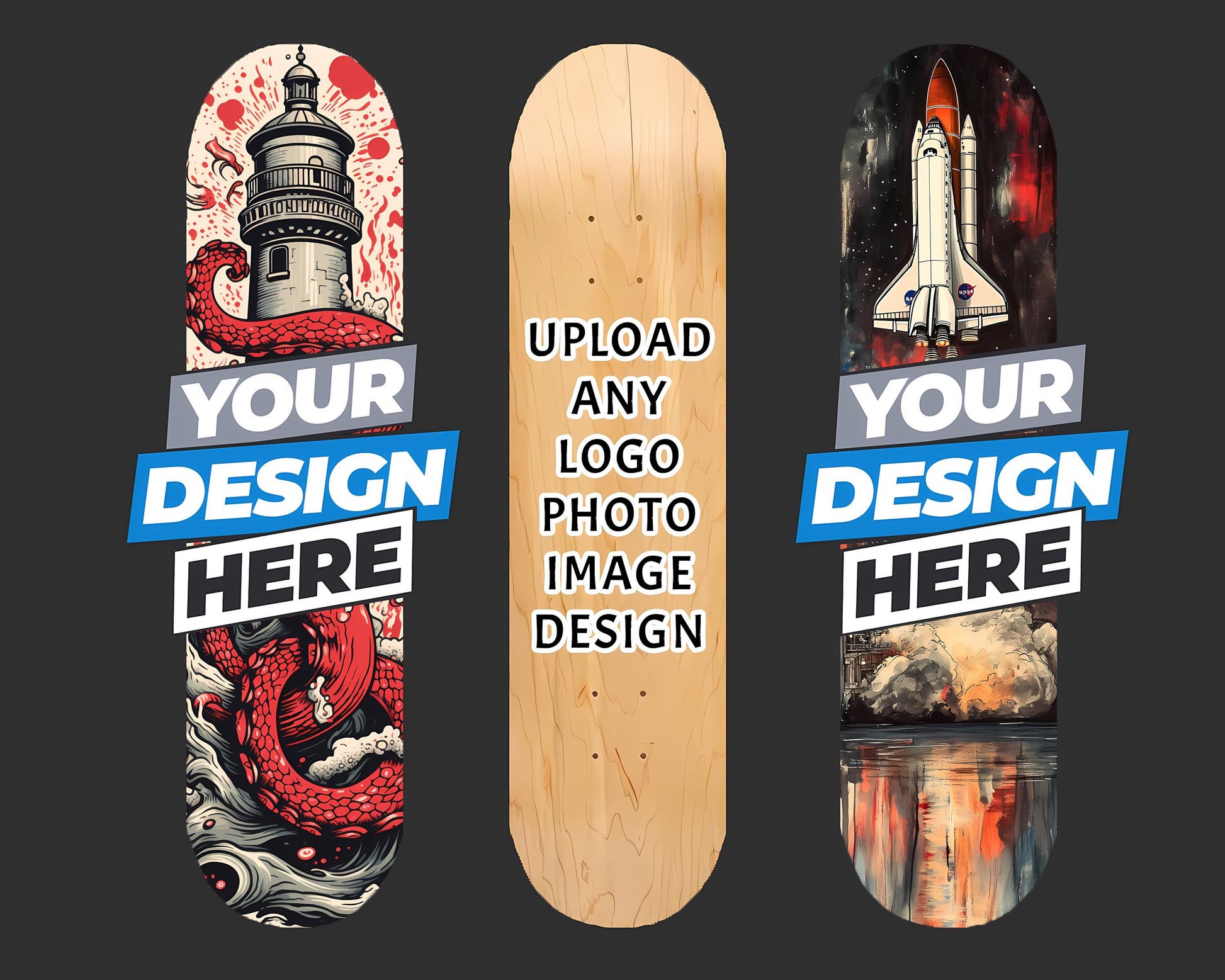 These collectable, high quality skateboard decks, are custom made to order and can be displayed as wall art, or can be used to skate on streets, rails, steps, walls or skate parks.